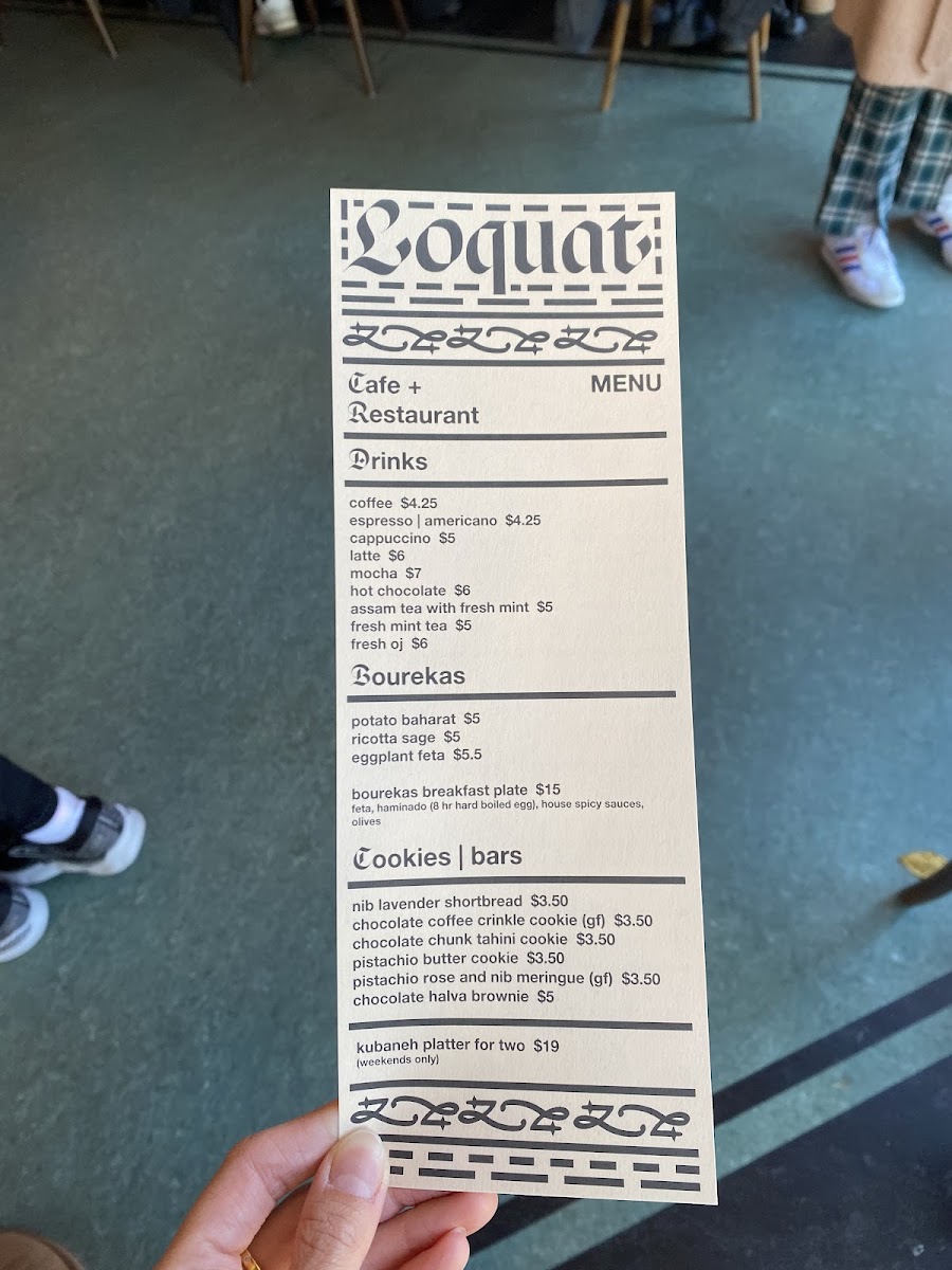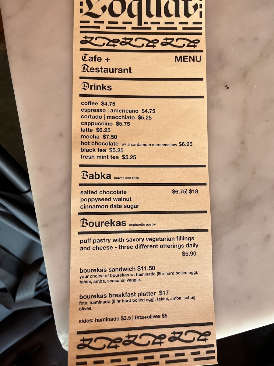 LOQUAT's menu features an impressive selection of both savory and sweet options, making it a haven for food lovers. For a delightful savory treat, don't miss out on their famed Bourekas. The Chickpea Tarragon and Spinach and Feta choices are exquisitely flaky, allowing you to savor the rich, creamy fillings that burst with flavor. The Bourekas Breakfast Platter is a fantastic way to start your day, perfect for those who appreciate a hearty morning meal.